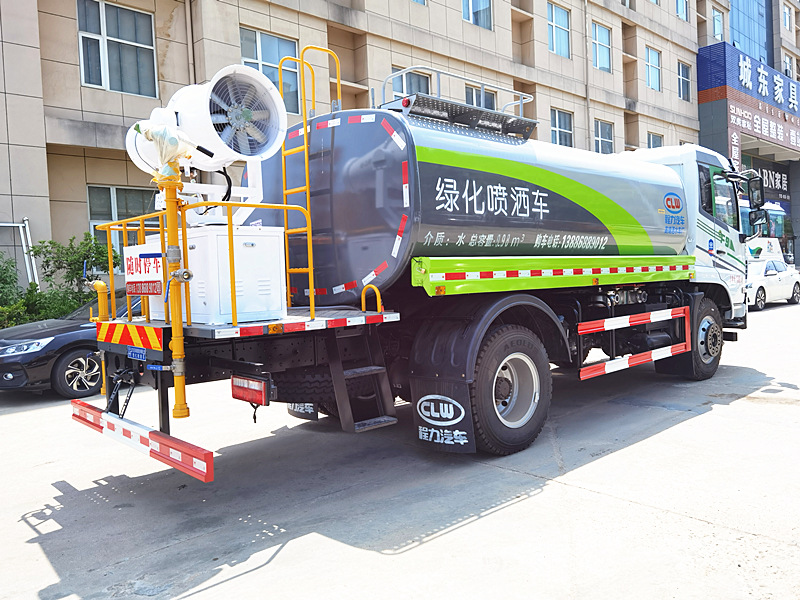 上裝配置:罐體采用國標Q235碳鋼板制作,可選用30米、40米中型霧炮,罐體采用機器壓板一次性成型技術,采用先進旋邊機,罐體包罐機工藝保證了罐體制作的精度和美觀。罐體厚度4mm,前后封頭5MM加厚型,罐體實際容積12立方(12噸),程力獨有烤漆工藝,多層底漆、防腐除銹,面漆噴涂。 功能齊全,配備前沖、后灑、側噴、綠化灑水炮,采用優質水泵,合理設計水路管道,氣控取力器,作業能力強;采用柴油發電機大功率霧炮機,噴灑距離選裝30-40米射程,運用范圍廣泛。