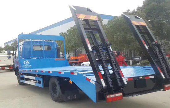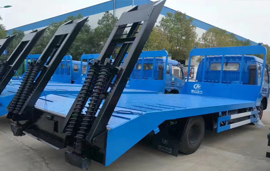 上裝配置:平板底板橫梁采用100*100*5mm方管,底板采用5mm或8mm花紋板,帶加密斜支撐,爬梯采用雙彈簧加強型設計,采用三道筋+雙彈簧加固焊接,可選裝液壓爬梯或折疊加長型液壓爬梯,斜坡處帶后支腿,平板有效板長6.6米(含斜坡),板寬2.5米,可以選擇貨箱帶欄板設計,15噸及15噸以下噸位挖機首選車型!